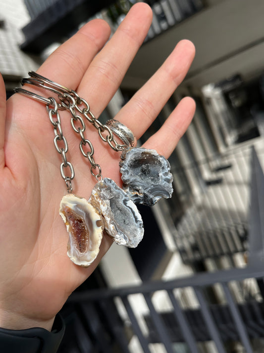 Agaat schijf sleutelhangers uit Brazilië lichte variant