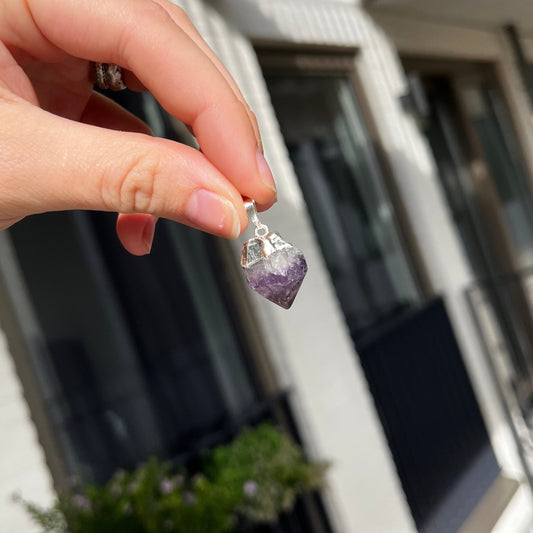 UitverkochtAmethist ruw verzilverde kettinghanger