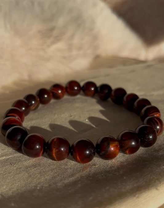 Rode tijgeroog kogelarmband 10mm