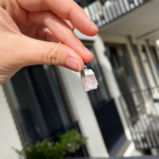 Rozenkwarts ruw verzilverde kettinghanger