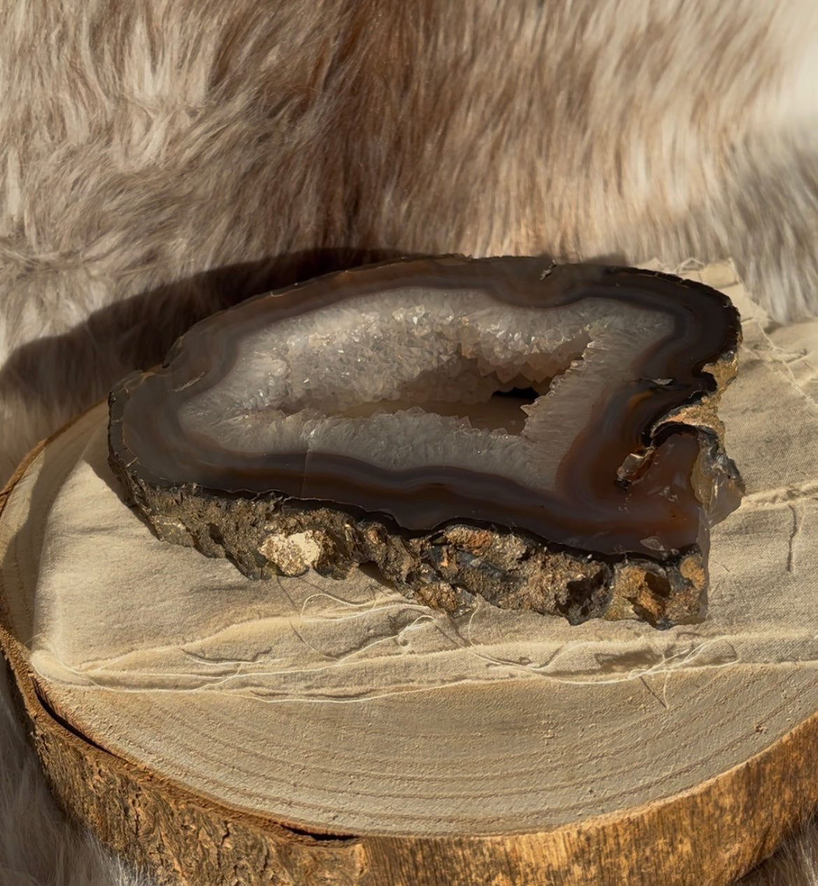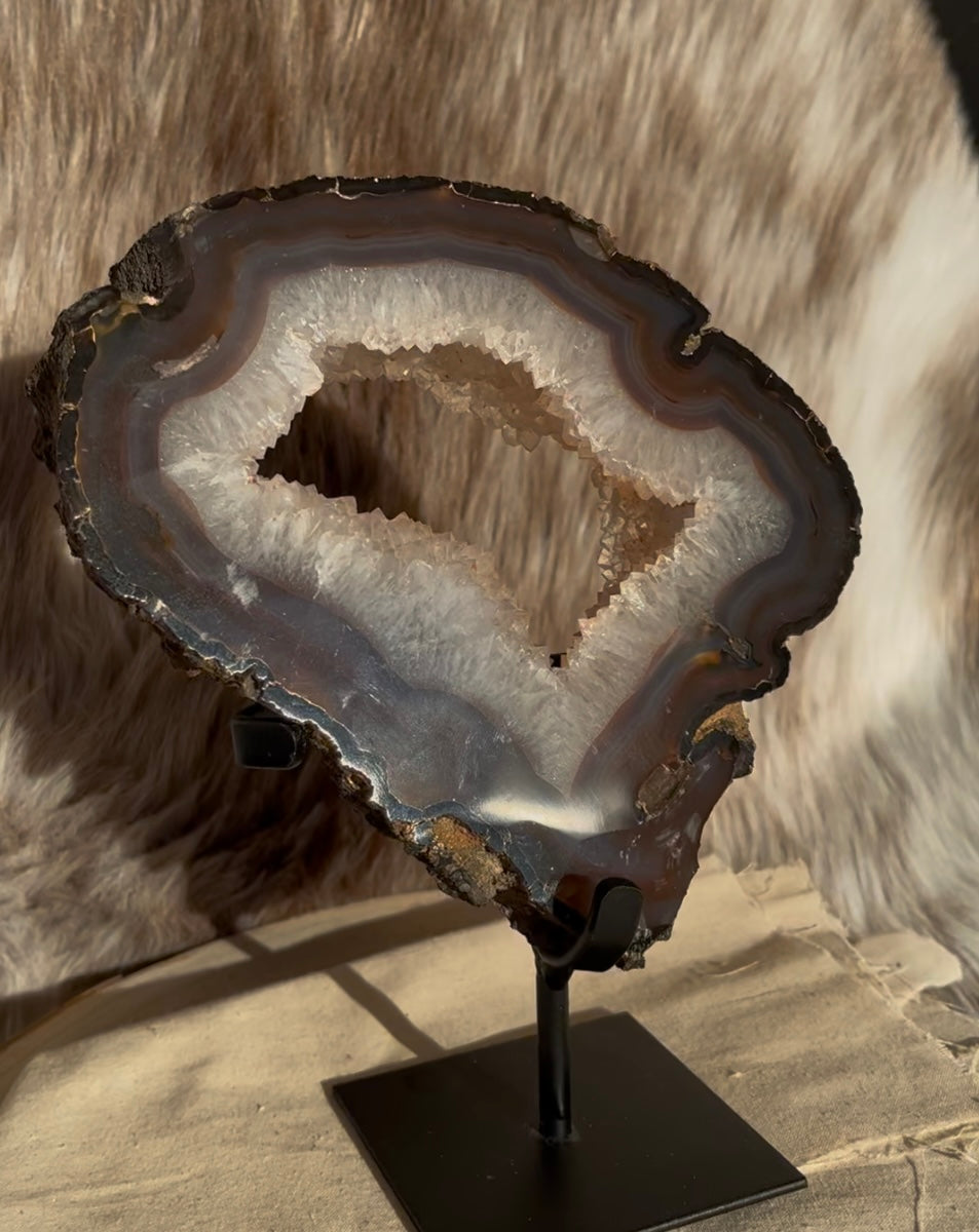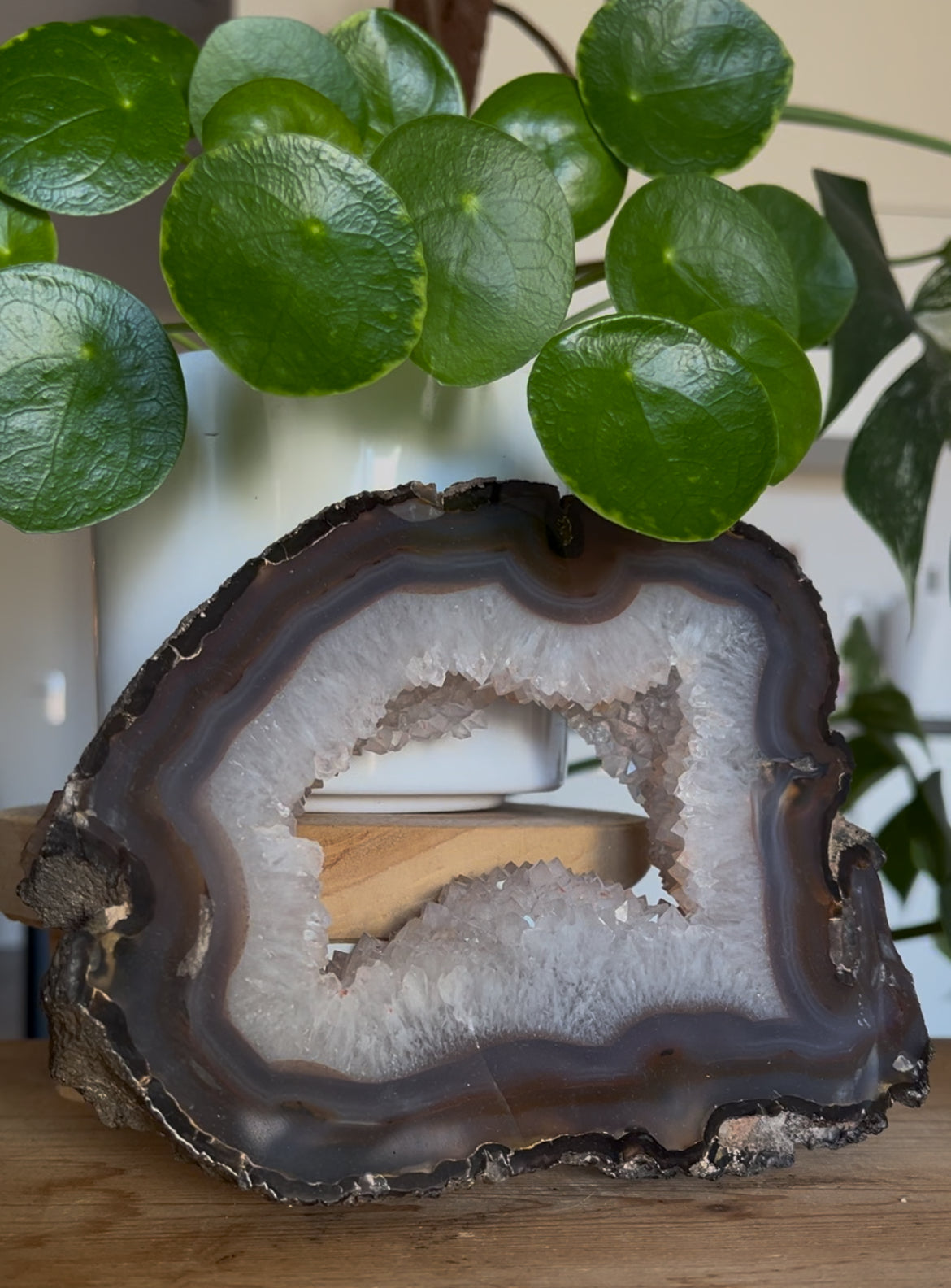 Agaat werkt beschermend, aardend en stabiliserend. Een fijne steen om in huis te hebben staan.