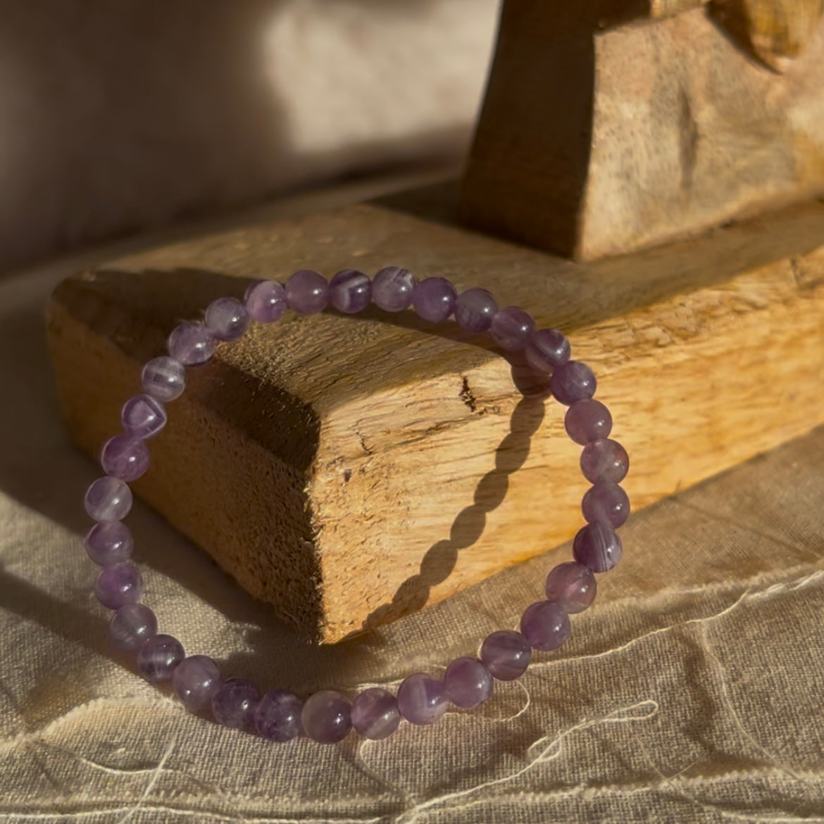 Amethist heeft een helende werking, zo helpt het tegen verkrampingen van de nek en de schouders die vaak spanningshoofdpijn veroorzaken. Ook helpt hij tegen zorgen en zorgt hij voor rust in je hoofd.