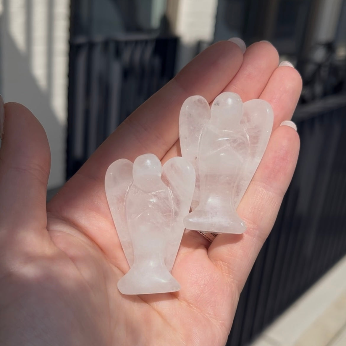 Bergkristal engel van 4cm hoog. Een mooi aandenken aan iemand die je lief hebt of om te schenken aan iemand die een dierbare is verloren. Prijs geldt per stuk.
