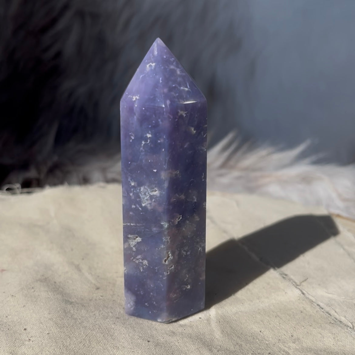 Deze paarskleurige agaat toren is 8,5cm hoog. *voorbeeld van de 3 dient als voorbeeld, je ontvangt bij aankoop de toren van de eerste foto.