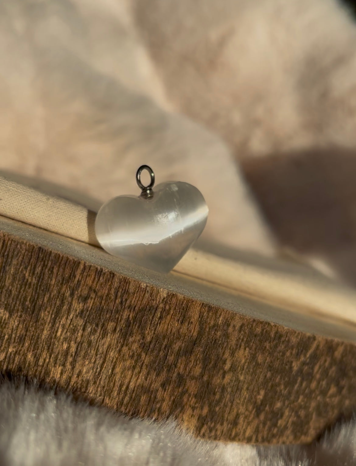Seleniet hartvormige kettinghanger met zilverkleurige hanger.